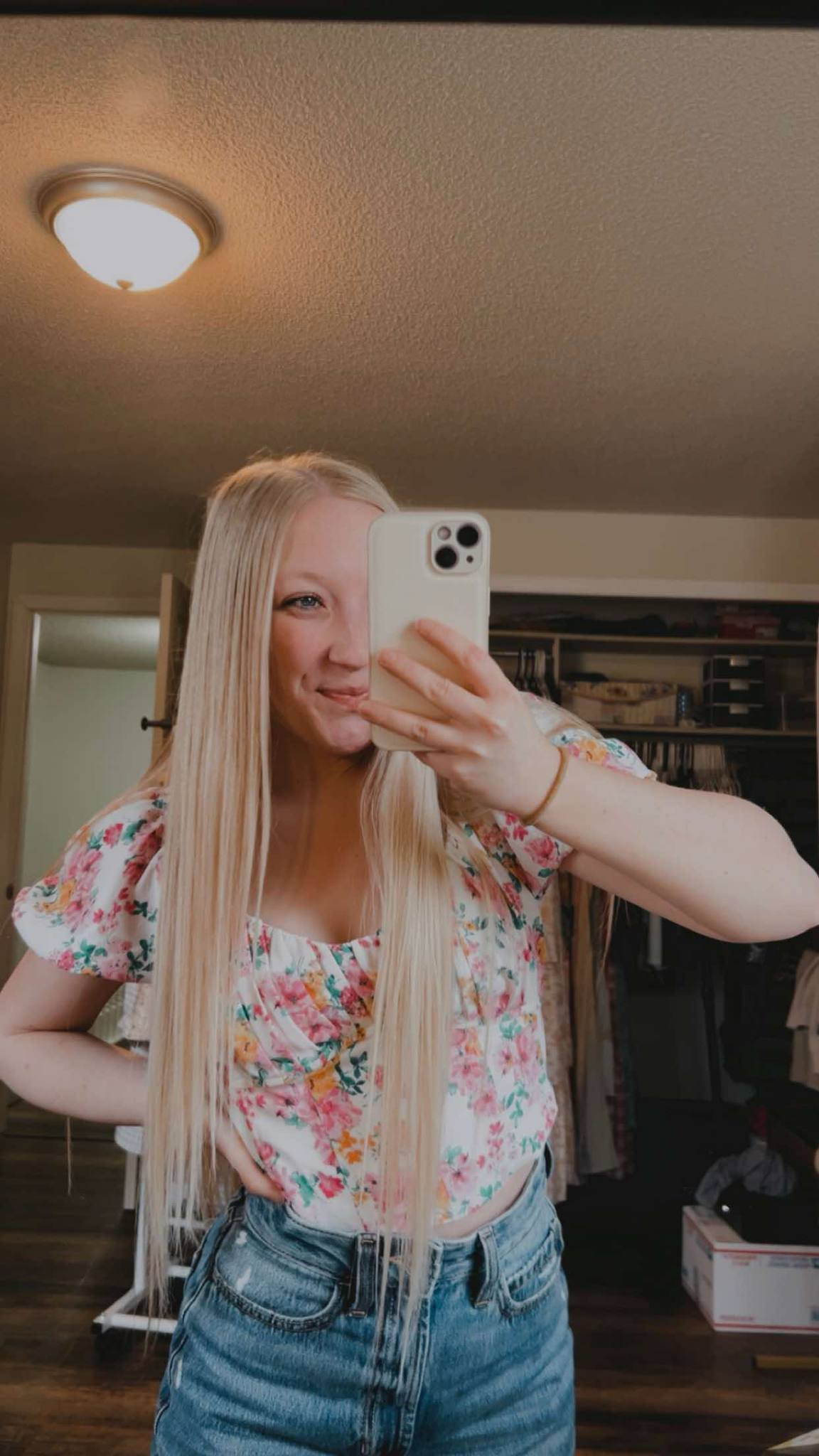 Add some floral fun to your wardrobe with the Flora Top! This cropped top features a charming floral pattern and a playful tie back for a unique touch. Perfect for a casual day out or a fun night in, this top will add a touch of whimsy to any outfit. Get ready to bloom in style! (Pairs perfectly with a Flora Latte hehe)